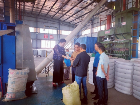 上午11點(diǎn)左右,鄧董事長(zhǎng)一行到達(dá)大英縣,隨即深入化纖廠進(jìn)行考察,先后走訪了化纖廠的車間和廠區(qū),仔細(xì)了解化纖廠現(xiàn)下生產(chǎn)情況及新冠肺炎疫情影響下的行業(yè)現(xiàn)狀。隨后,鄧董事長(zhǎng)帶領(lǐng)考察團(tuán)一行與化纖廠管理層進(jìn)行了深入溝通,進(jìn)一步了解了化纖廠的產(chǎn)能和經(jīng)營(yíng)規(guī)劃。在溝通中,渝能化纖廠負(fù)責(zé)人李玉首先忠心感謝四川省棉麻公司長(zhǎng)久以來(lái)給予化纖廠的支持和幫助,同時(shí)表示,在新冠肺炎疫情影響下,企業(yè)受到較大沖擊,企業(yè)也在積極尋找出路,期望能和四川省棉麻公司進(jìn)一步合作。考察團(tuán)認(rèn)真聽(tīng)取了李玉的介紹,期望化纖廠能盡快提出可行性方案,為下一步合作打下基礎(chǔ)。