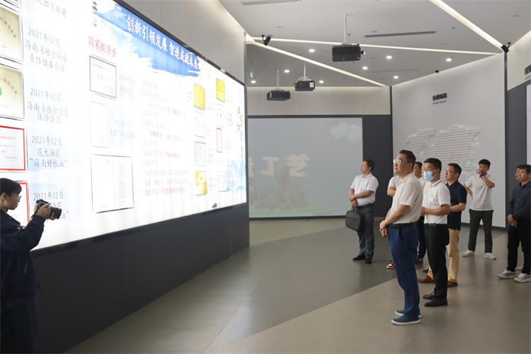 考察組一行實(shí)地參觀了澳斯卡智慧工廠、大數(shù)據(jù)管理系統(tǒng)、精煉車間、小包裝車間等點(diǎn)位。
